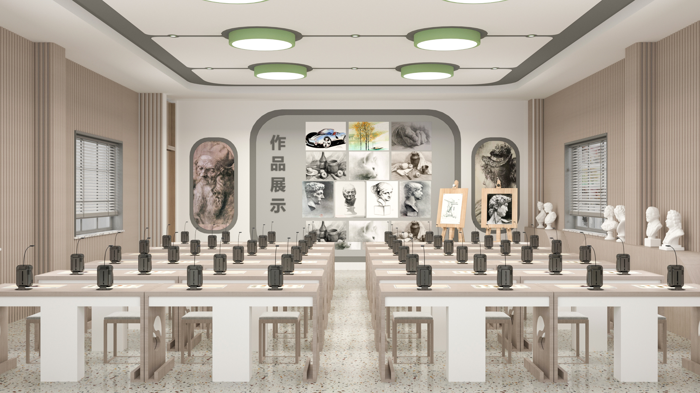 ·全員配置羿飛首創(chuàng)投射式數(shù)字臨摹學(xué)習(xí)臺,傳統(tǒng)與科技相結(jié)合,同時拓展美術(shù)鑒賞、手工課、版畫、漫畫等相關(guān)美術(shù)內(nèi)容