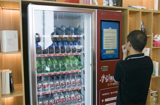 羿飛教育在此區(qū)域設(shè)置了學(xué)習(xí)強國答題一體機與答題飲料機,通過互動答題檢驗學(xué)習(xí)強國的學(xué)習(xí)成果,更能贏取免費飲料,新穎的體驗?zāi)J阶尶疾靾F忍俊不禁。