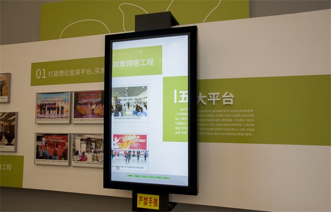 隨著滑軌屏的移動,文化墻上的宣傳內(nèi)容會相應(yīng)地出現(xiàn)在屏幕上,讓宣傳展示更有趣新穎。