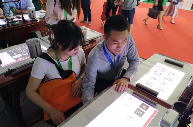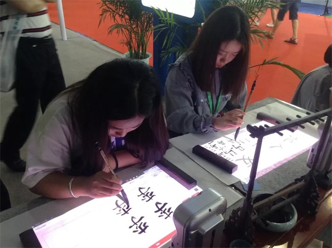 開展期間,羿飛翰墨派書法教室座無虛席,第二代翰墨派書法教學(xué)系統(tǒng)的首次公開亮相,優(yōu)秀的書寫體驗可謂征服全場。