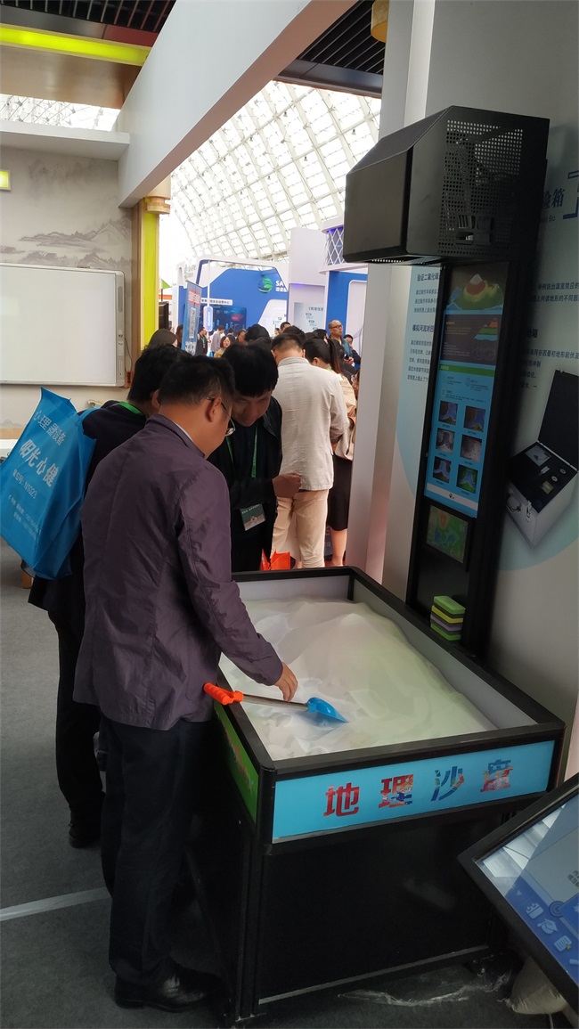 羿飛數(shù)字化地理專用教室集現(xiàn)代地理教育技術(shù)最新成果之大成,現(xiàn)場(chǎng)展出了多媒體超半球互動(dòng)球幕投影演示儀、數(shù)字立體地形、天文演示儀、地理微課堂、數(shù)字模型、交互式3D多媒體教學(xué)系統(tǒng)等教學(xué)設(shè)備,囊括地理教學(xué)的方方面面。
