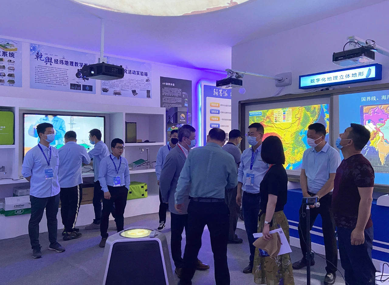 地理展區(qū)展出了環(huán)幕示教系統(tǒng)、數(shù)字立體地形、AR地理沙盤、天文演示儀、3D數(shù)字模型、AR地球儀等貼合教學(xué)的一系列產(chǎn)品,都是老朋友,當(dāng)然也有部分功能的升級(jí)。