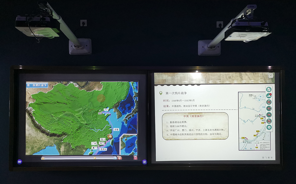 數(shù)字立體地形由立體模型(中國/世界)、推拉白板、投影機(jī)、互動(dòng)模塊、應(yīng)用軟件及演示內(nèi)容構(gòu)成。教師通過手中的控制筆指點(diǎn)擊模型或演示白板上的功能按鈕,即可演示中國地形、河流,降水量、植被、溫度帶、氣候等的文字、圖片、視頻、動(dòng)畫等地理信息,數(shù)字立體地形全方位地將模型的課件內(nèi)容展示給學(xué)生,最大的賦予了模型更豐富的教學(xué)內(nèi)容,更好地詮釋數(shù)字化多媒體地理教學(xué)理念,使在地理教學(xué)應(yīng)用上更加生動(dòng),形象。
