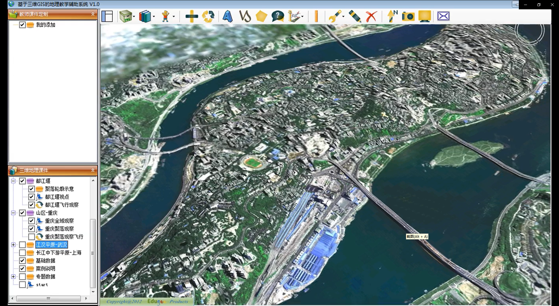 軟件具備GIS地圖以及分析功能,是講授GIS和普通地理知識的地理教學(xué)輔助平臺。該軟件附帶大量的 地理底圖、地形圖和專題圖,滿足地理教師在進(jìn)行地圖知識、中國地理、世界地理和高中地理課件在整合 時的地圖豐富多樣的表現(xiàn)形式以及簡便的GIS操作方式。 GIS教學(xué)輔助軟件系統(tǒng)包括空間數(shù)據(jù)存取模塊、地理數(shù)據(jù)編輯模塊、地圖查詢模塊、空間數(shù)據(jù)統(tǒng)計分析 模塊和時態(tài)GIS等五個功能模塊。